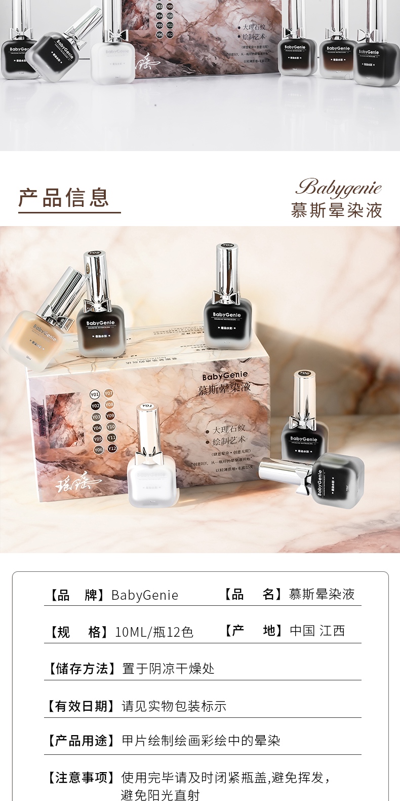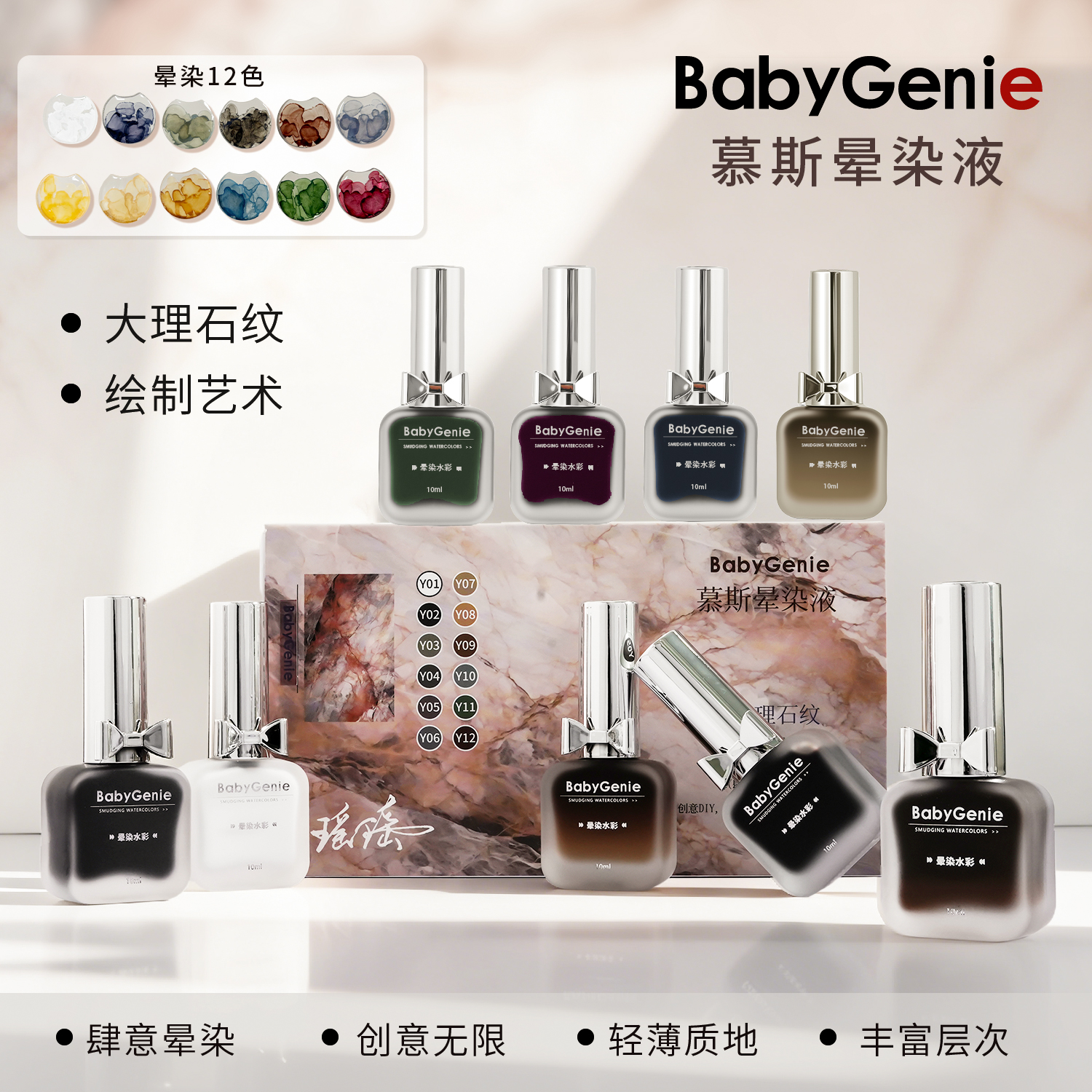 BabyGenie慕斯暈染液12色套組+贈送1罐透明色 共13瓶